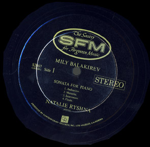 Lester Koenig started also a label for classical music, Society for Forgotten Music (SFM). Piano Sonatas for Four Hands (Jan Ladislav Dusek) is the earliest mono release on M 1002, and later recordings were released of instrumental and chamber music by composers Mily Balakirev, Guillaume Lekeu, Ernest Chausson, and Vernon Duke.