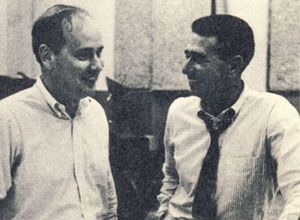 Johnny (John) Williams and Shelly Manne in the Capitol Studios in Los Angeles in 1964 when recording My Fair Lady with singers Jack Sheldon and Irene Kral, Shelly Man and His Men and orchestra conducted by John Williams who also wrote the arrangements.